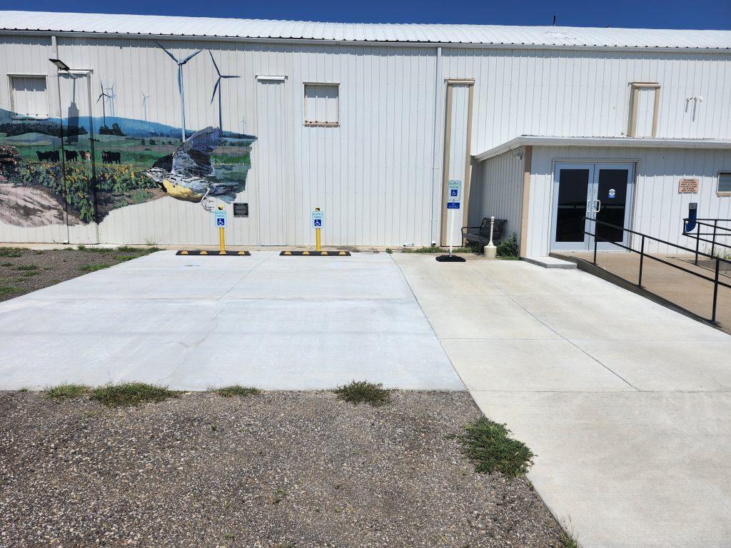 Several concrete improvements have been completed with the help of a grant from the Post Rock Community Foundation. Earlier this year four additional handicap parking places were poured in front of the main entrance and connected to the front door ramp. A larger drop off pad was also poured and millings were delivered and spread where it was needed.